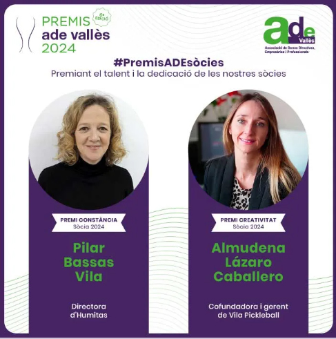 En esta ocasión, los Premis Sòcia ADE han recaído en Pilar Bassa Vila, directora de Humitas y Almudena Lázaro Caballero, cofundadora i gerente de Vila Pickleball
