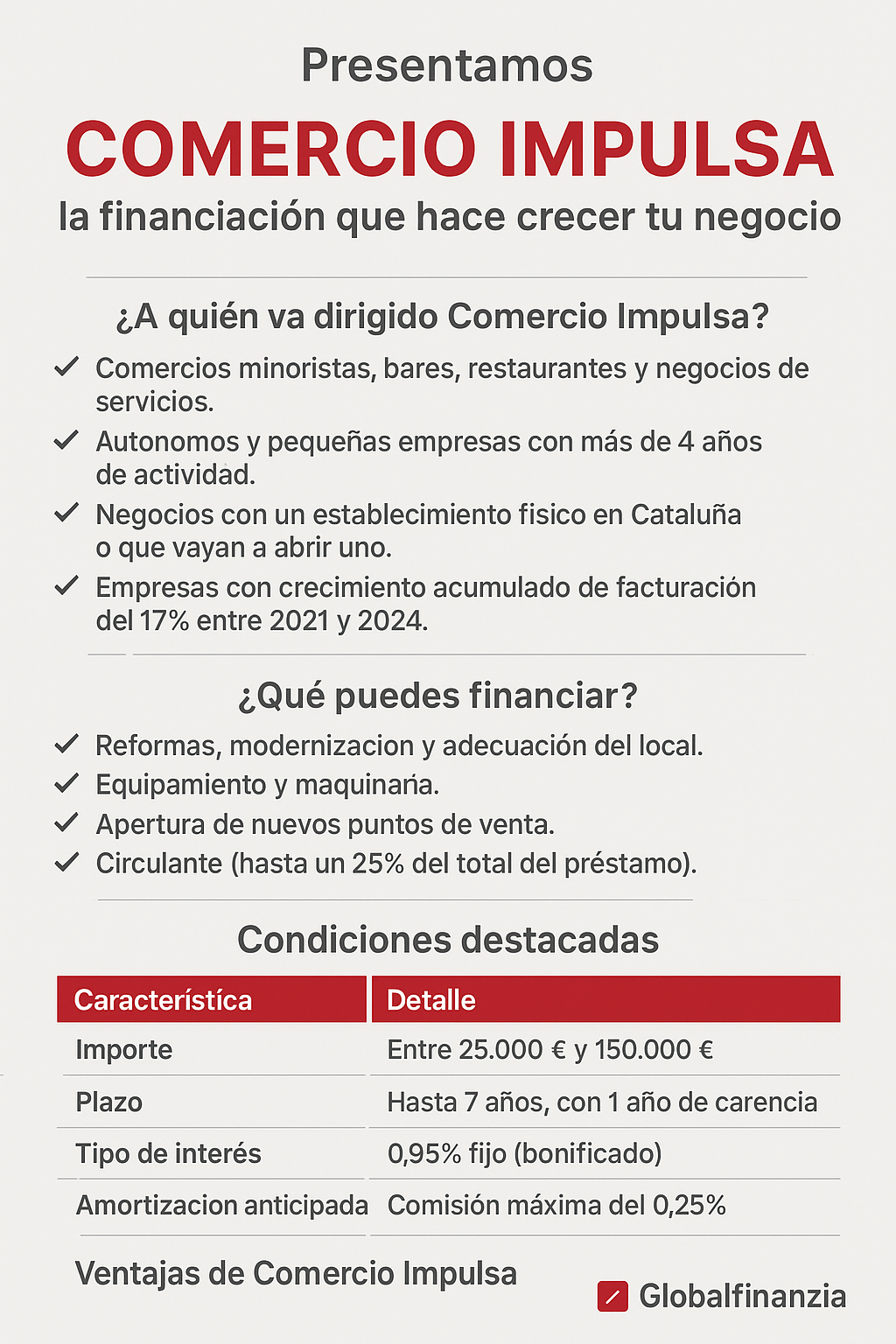 En Globalfinanzia lanzamos Comercio Impulsa, una línea de financiación diseñada para PYMEs, autónomos y comercios del sector retail, hostelería y servicios.