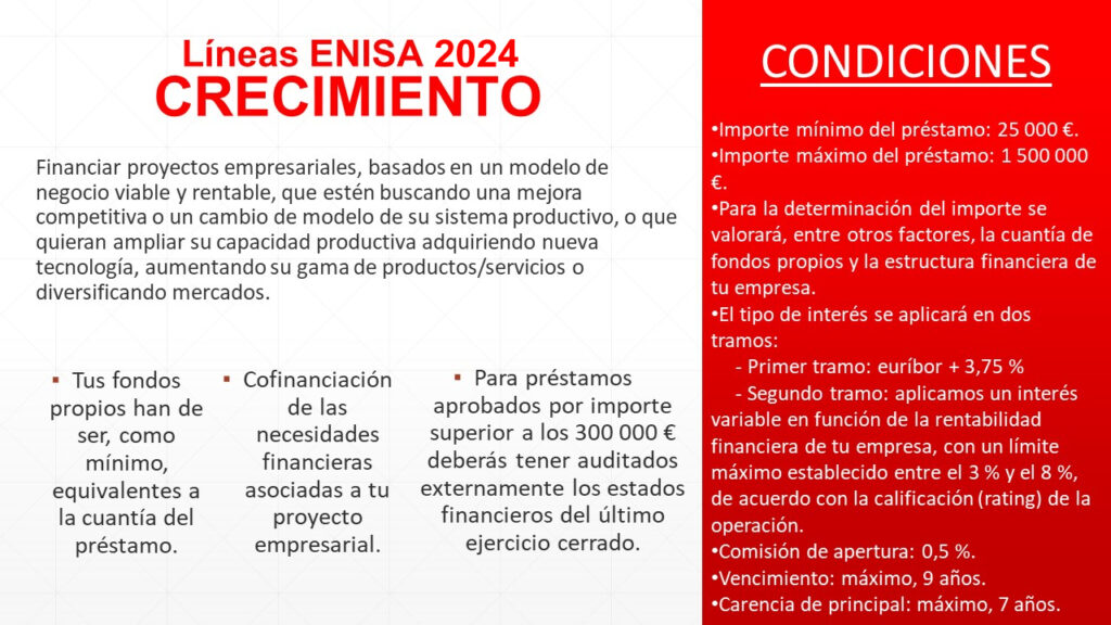 Importe: entre 20.000€ y 2M€ por operación, y hasta 7,5M€ por cliente.